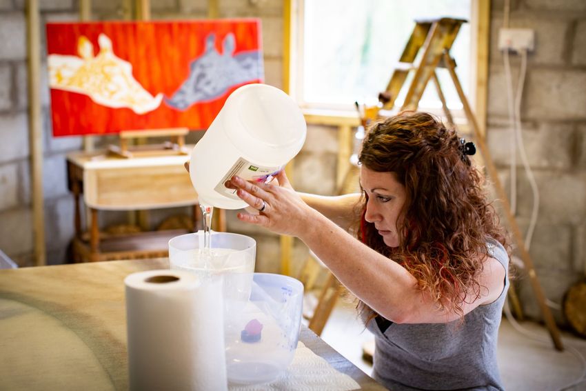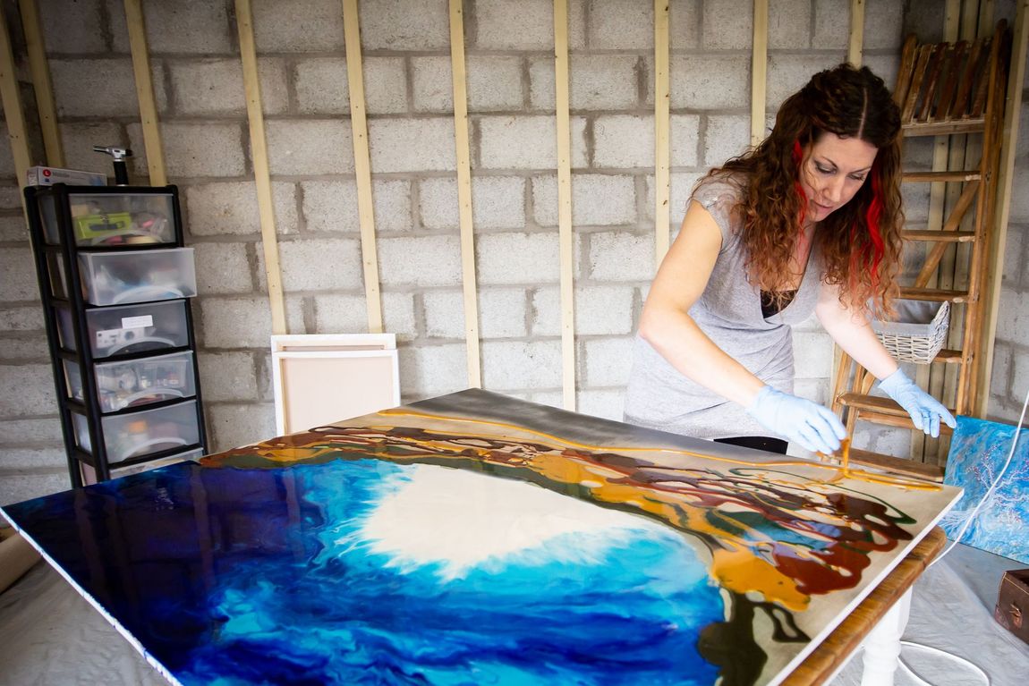 I work across resin and mixed media, often using pigments, inks, acrylics, oils and gold leaf.
