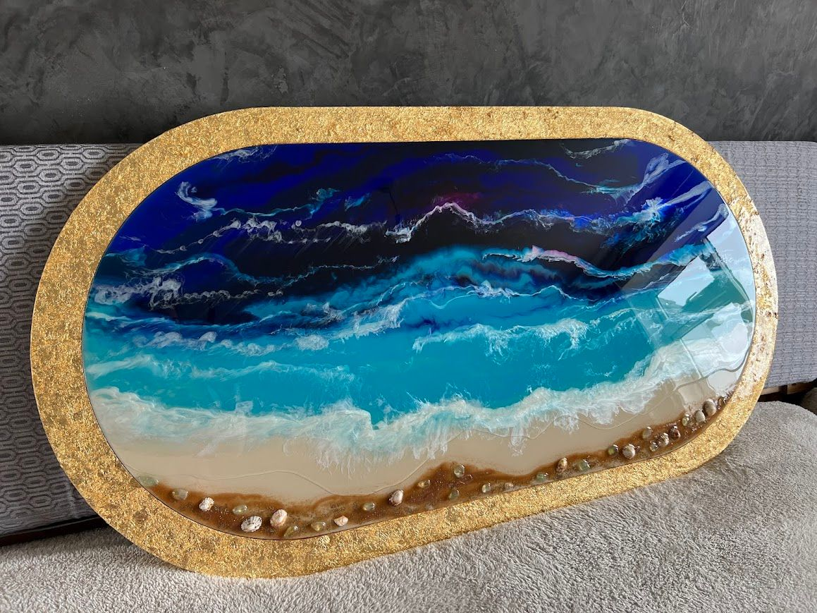 A bespoke pair of resin artworks created using treasured sand and seashells collected by the client’s grandsons on the beach. Created to celebrate family, memory and a shared love of the sea, one piece was kept by the client and the other gifted to her daughter.