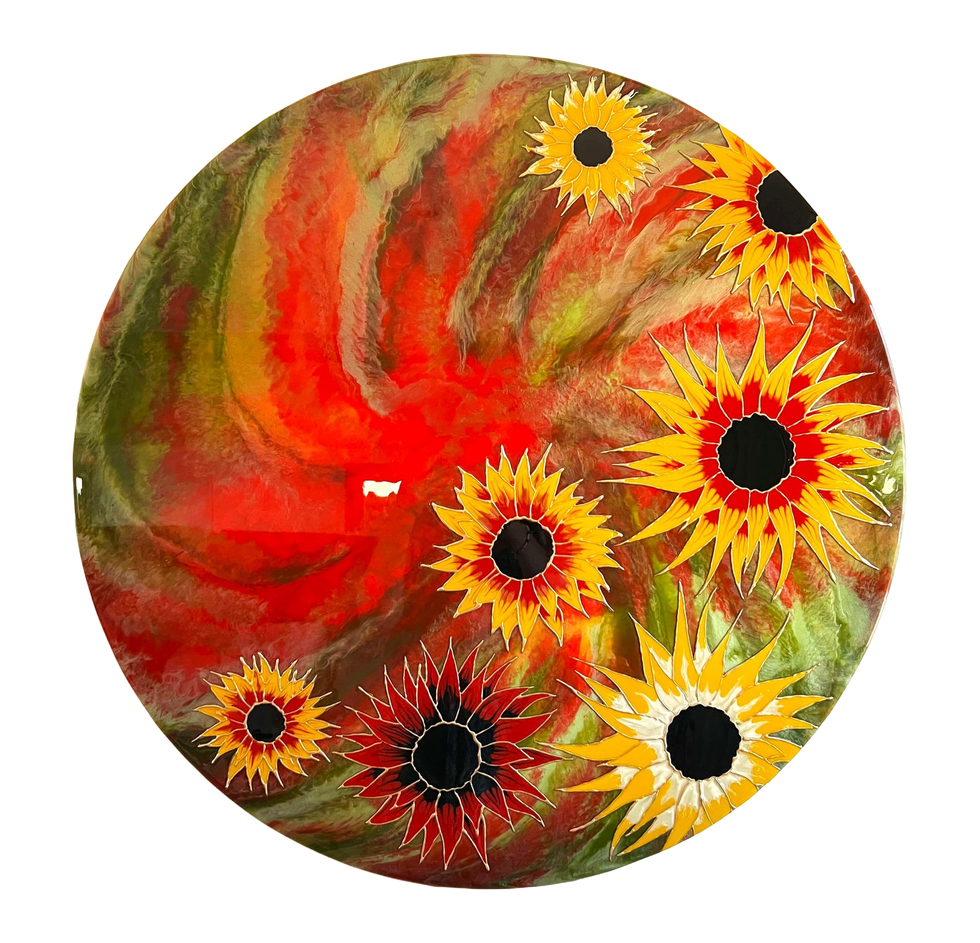 A bespoke resin artwork created for a client in the South of France, inspired by the radiant beauty of sunflowers and the joyful energy of summer days. Made with resin, gold leaf, inks and natural pigments, the piece was designed to fill the space with warmth, movement and light.